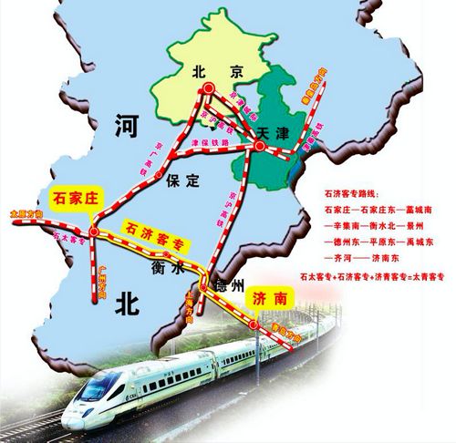 石家莊至濟南高速鐵路作為國家鐵路“十二五”規(guī)劃重點建設(shè)項目,全線298公里,運行時速250公里每小時。該線以河北省石家莊市、山東省濟南市兩省會城市為始終點,沿途經(jīng)過河北衡水、山東德州兩地級市,西伸、東進分別與石太客專、濟青高鐵相接,橫貫晉冀魯三省。同時,線路還在石家莊站與京廣高鐵、在德州東站與京滬高鐵銜接,全線共設(shè)11個車站,除石家莊、德州東兩站外,全線新建石家莊東、藁城南、辛集南、衡水北、景州、平原東、禹城東、齊河、濟南東9站。