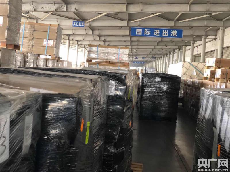 中國國航成都貨運站貨物一級監管區內的國際進出港(央廣網記者樊承志 攝)