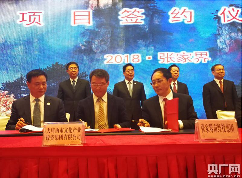 作為張家界旅游文化對接國家“一帶一路”倡議,實現旅游國際化的張家界絲綢之路國際旅游文化產業園項目,協議總投資350億人民幣,由大唐西市集團、北京輝煌集團、絲綢之路國際總商會實施,將打造以文化產業和現代服務業為主體的國際旅游、文化、商業綜合體,以及“一帶一路”國際特色小鎮。項目選址緊靠張家界荷花國際機場,規劃用地約3380畝。