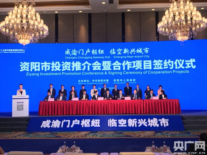 央廣網成都9月19日消息(記者劉濤)9月18日下午,“成渝門戶樞紐·臨空新興城市—資陽市投資推介會暨合作項目簽約儀式在成都舉行。活動共簽約26個合作項目,投資總額達324.37億元。