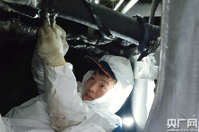 央廣網重慶1月30日消息(記者趙聰聰 通訊員施為 倪瑜浩)“別都圍上來,他不好出來。”“慢點!別磕著!”“來!扶一把!”“別動!稍等!我腿麻了得緩緩......”1月30日,成都動車段檢修庫動車組內,二級修4班王占軍穿著污跡不堪的白色的防護服滿頭大汗從設備艙鉆出來。