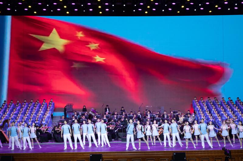 央廣網(wǎng)大連6月18日消息(記者張四清 賈鐵生)6月17日晚,千名大連藝術(shù)學(xué)院師生在人民大會(huì)堂演出原創(chuàng)勵(lì)志音樂劇《追夢·青春》,這是以思政課為主題的大型劇目,此前在大連、沈陽地區(qū)上演時(shí)就好評(píng)如潮。5月6日晚,《追夢·青春》在遼寧沈陽盛京大劇院演出時(shí),同時(shí)在多個(gè)網(wǎng)絡(luò)平臺(tái)進(jìn)行直播,吸引了遼寧省103所高校百萬青年學(xué)子觀看。