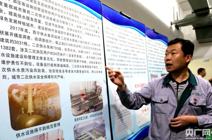 西寧供水集團(tuán)總經(jīng)濟(jì)師薛宏偉介紹二次供水改造進(jìn)展情況(央廣網(wǎng)記者 張雷 攝)