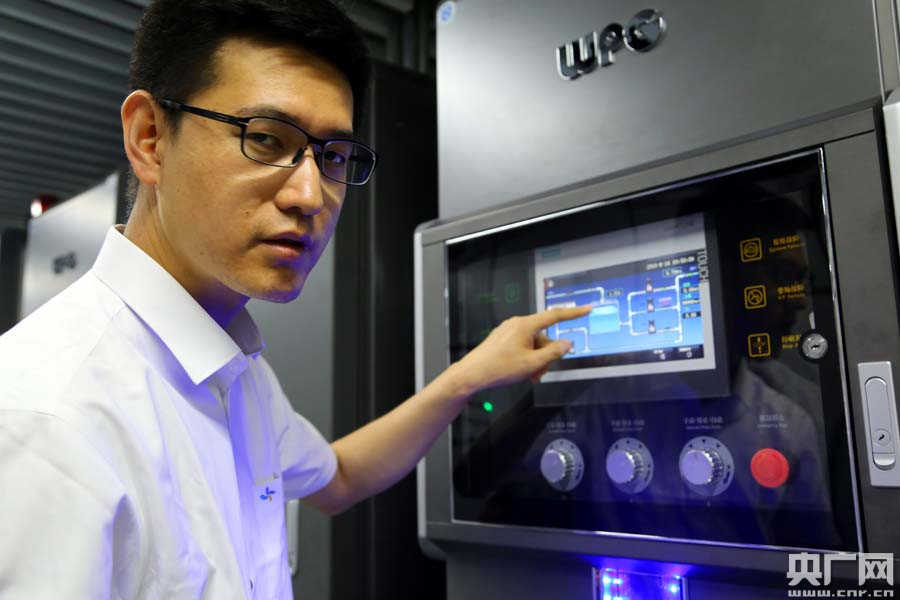 西寧市第七水廠廠長邵龍?jiān)诮榻B凈化水裝置(央廣網(wǎng)記者 張雷 攝)