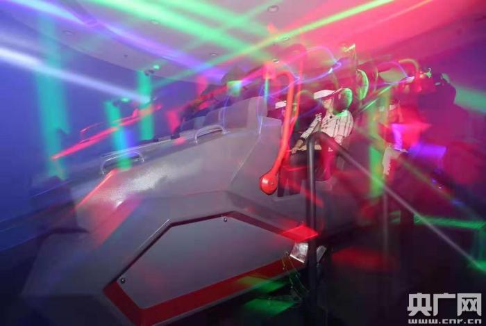 VR騎乘配有8個座位,市民可以體驗“過山車”一般從海河到深海再入太空的視覺體驗(央廣網(wǎng)發(fā) 賈成龍 攝)
