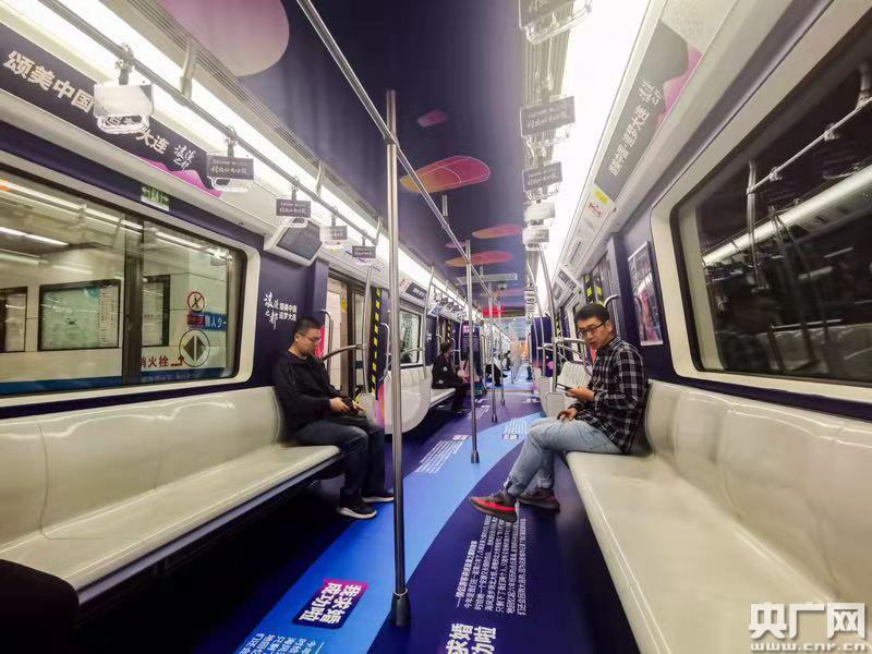 央廣網大連9月27日消息(記者賈鐵生)9月27日,“頌美中國 追夢大連”主題列車在大連地鐵正式上線。在車廂里,不僅可以看到中國各地的地標建筑、中國第一顆衛星“東方紅”、祖國人民生活的變遷,還可以看到大連國際會議中心、中山公園、跨海大橋,以及在大連這座文明、浪漫元素。置身其中,仿佛來到“移動畫廊”,能感受到70年來,新中國發生的天翻地覆的變化,以及大連的不斷發展。
