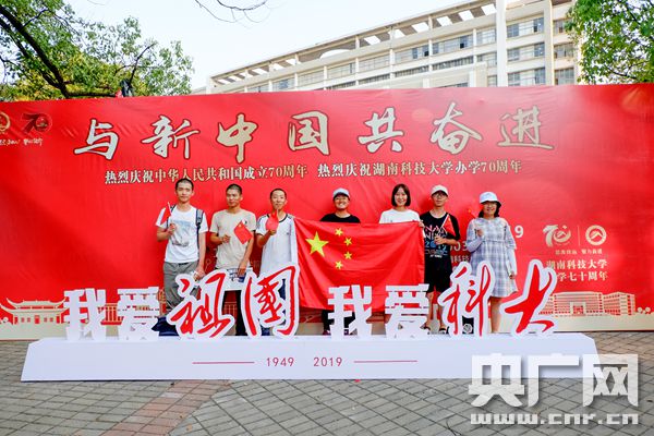 為“慶國慶、迎校慶”,勉勵自身不忘初心、牢記使命,繼往開來、砥礪前行,湖南科技大學的學生們紛紛拿起小紅旗,組織各式各樣的活動為新中國70歲生日實力打call!
