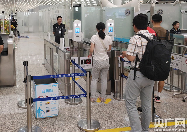 旅客可通過身份證和人臉識別經由入口閘機進入智能安檢通道(央廣網發 通訊員李袁晶 攝)