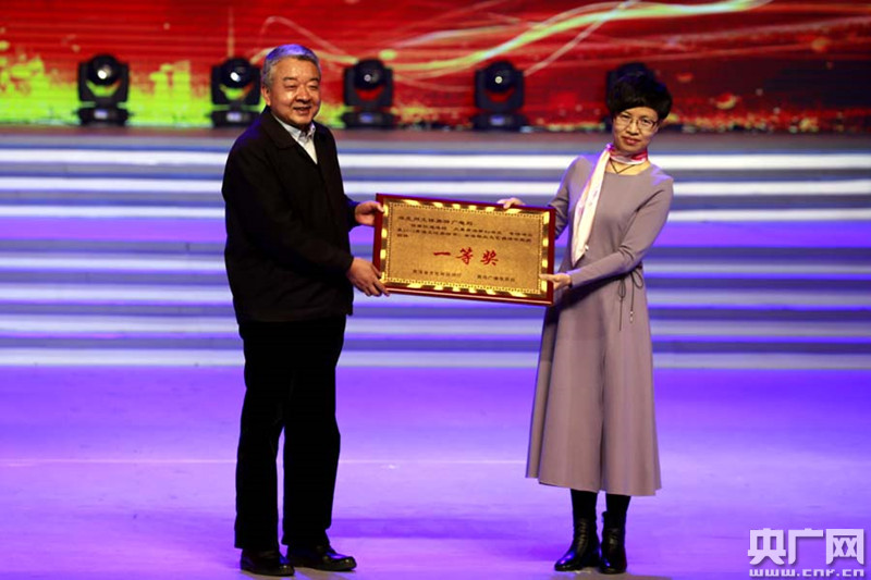 青海省委常委、宣傳部長為榮獲全省文藝調(diào)演團(tuán)體一等獎(jiǎng)的單位頒獎(jiǎng)(央廣網(wǎng)記者 張雷 攝)
