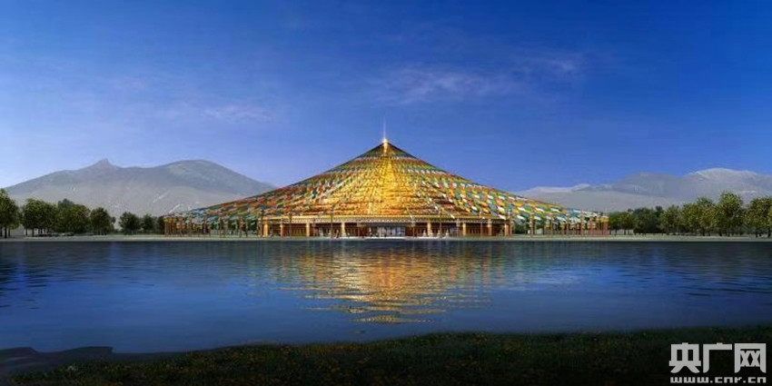 建成后的演藝中心將與背后的雪山相映形成新景觀(央廣網(wǎng)發(fā) 通訊員劉琳 攝)