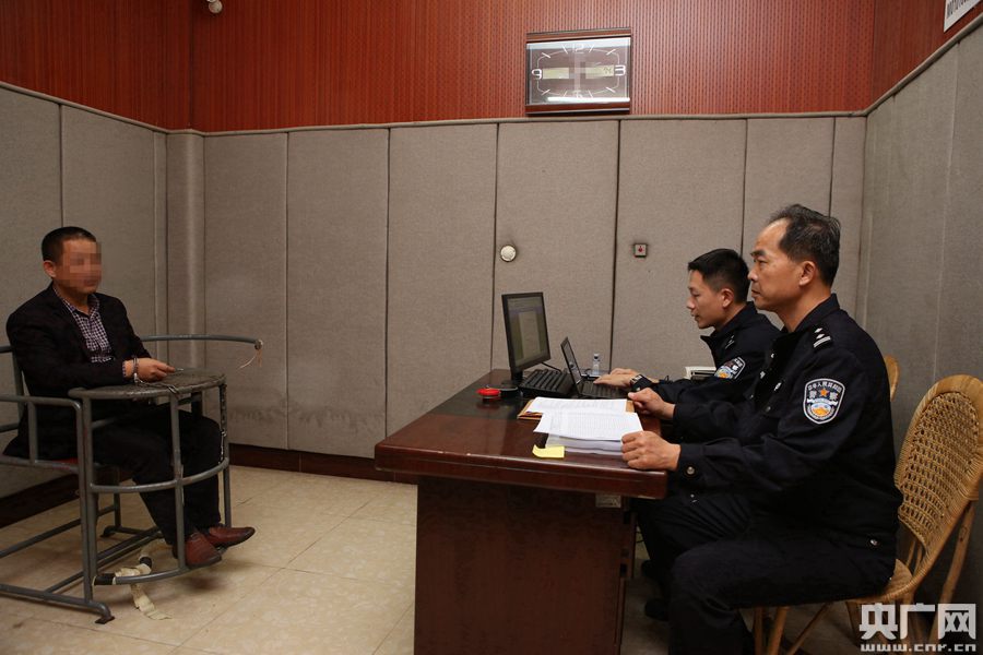 圖為汕頭海關緝私人員依法訊問犯罪嫌疑人(央廣網發 盧健能 攝)