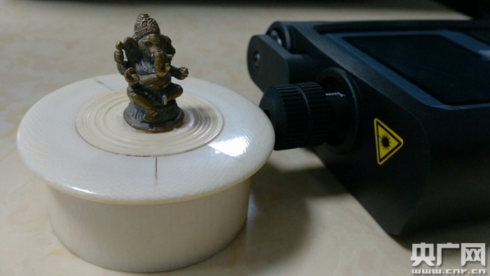 該快件物品申報品名為“餐具蓋”“瓷盤”“瓷杯”各1件。關員開箱查驗發現,包裹內有瓷杯、瓷盤及一個牙白色的小盒子。經過肉眼判斷,申報為“餐具蓋”的物品符合象牙制品一般特征,遂進一步使用物像識別儀進行檢測,經多次不同角度檢測,均提示為“象牙”。2月14日,經華南野生動物物種鑒定中心專業鑒定,認定為象牙制品,凈重40克。目前該案件已移交緝私部門作進一步處理。