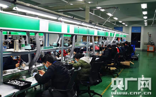 在防疫物資生產(chǎn)線上,工人們緊張進(jìn)行生產(chǎn)。(央廣網(wǎng)發(fā) 長沙雨花經(jīng)開區(qū)供圖)