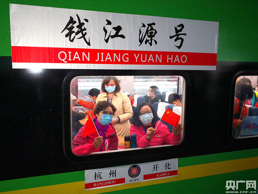 全國首趟春季旅游專列從杭州開出 (央廣網發 羅驊 攝)