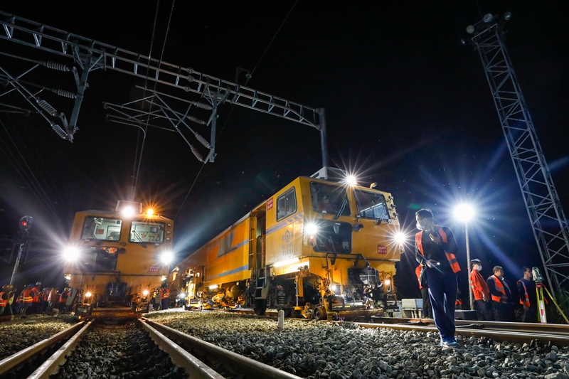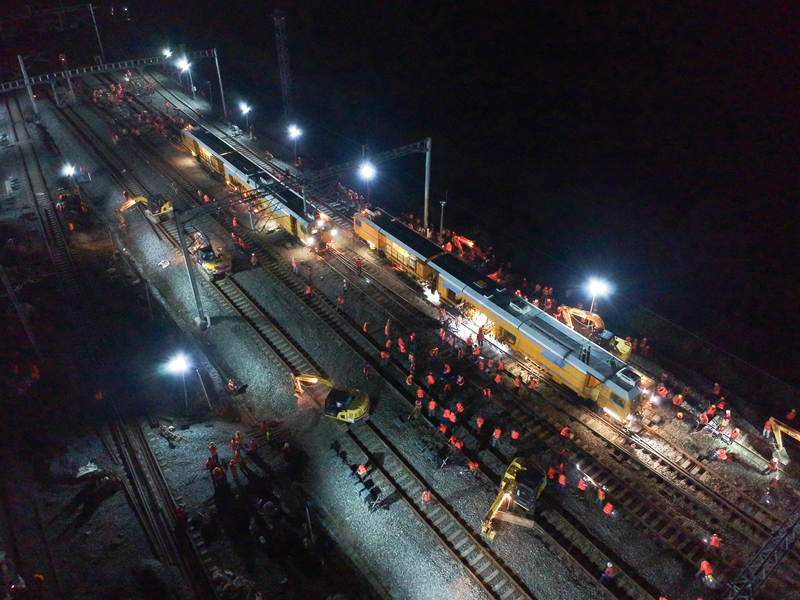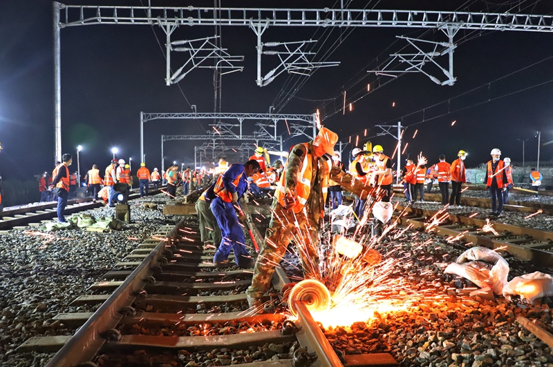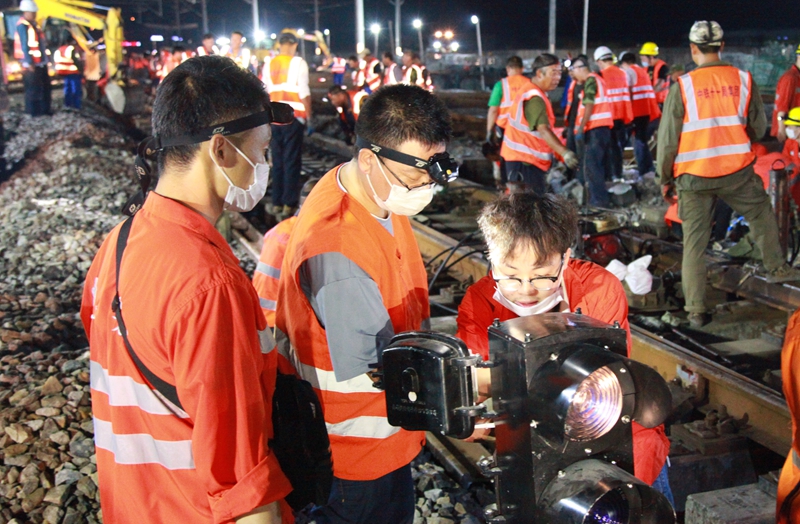 此次施工涉及道岔插鋪、大機搗固、信號軟件換裝、接觸網改造、站型升級等多種專業施工,參與施工人數600余人,存在施工時間緊、工程復雜、作業面狹小、拆換工序交叉、道岔縱橫推移距離長等特點。施工中,各單位和部門密切協同配合,確保施工環節的全過程控制,分工到組、責任到崗、精確到點,實現安全正點目標。該站改施工預計5月底完工。
