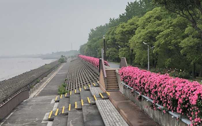 漫步公園的濱江岸線,江風吹來初夏的味道,江面上,一艘艘輪渡或出發駛向遠方或自遠方歸來,與眼前的花墻遙相呼應,在風中搖曳著伸向遠方,如同站立在緩行長鳴的充滿現代氣息的時尚列車上,那種昂揚向上的大自然的生命活力,賜予了人們奮發向上的精神和享受。