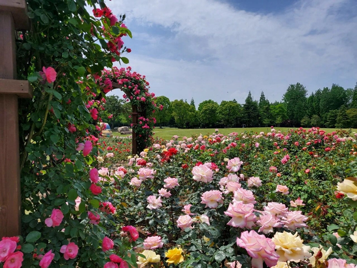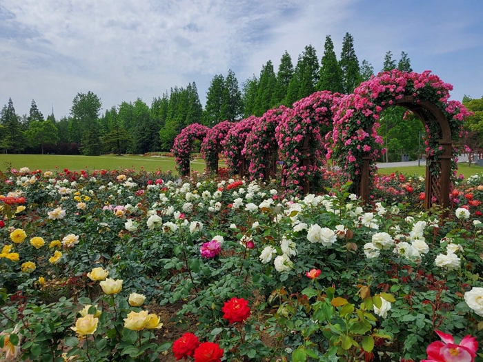 花墻對面,今年園方還精心布置了大花月季觀賞小景,與花墻遙相呼應,讓市民游客走進月季,近距離欣賞美、拍攝美。