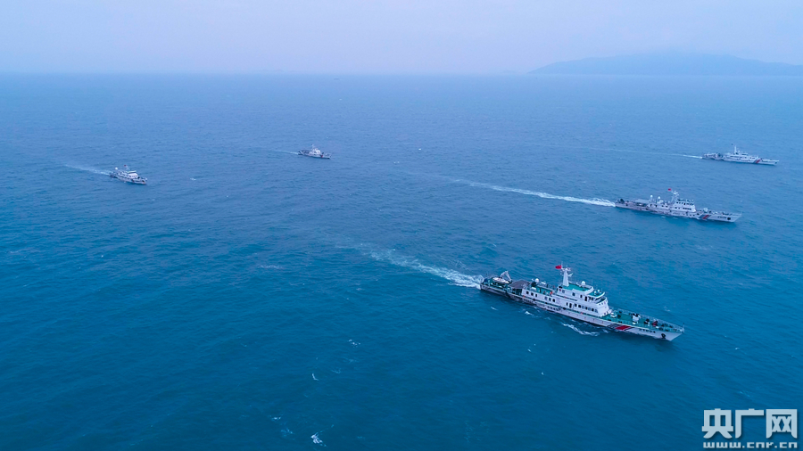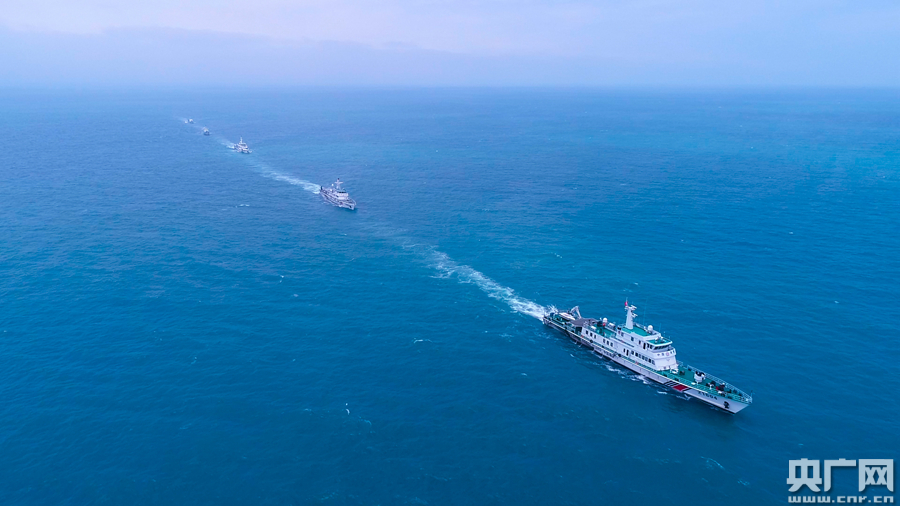 圖為汕頭海警局艦艇單橫隊航行(央廣網發 汕頭海警局供圖)