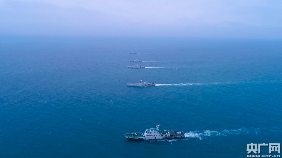 圖為汕頭海警局艦艇艦艇人字隊型航行(央廣網發 汕頭海警局供圖)
