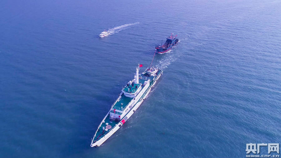 圖為汕頭海警局摩托艇追堵嫌疑船只(央廣網發 汕頭海警局供圖)