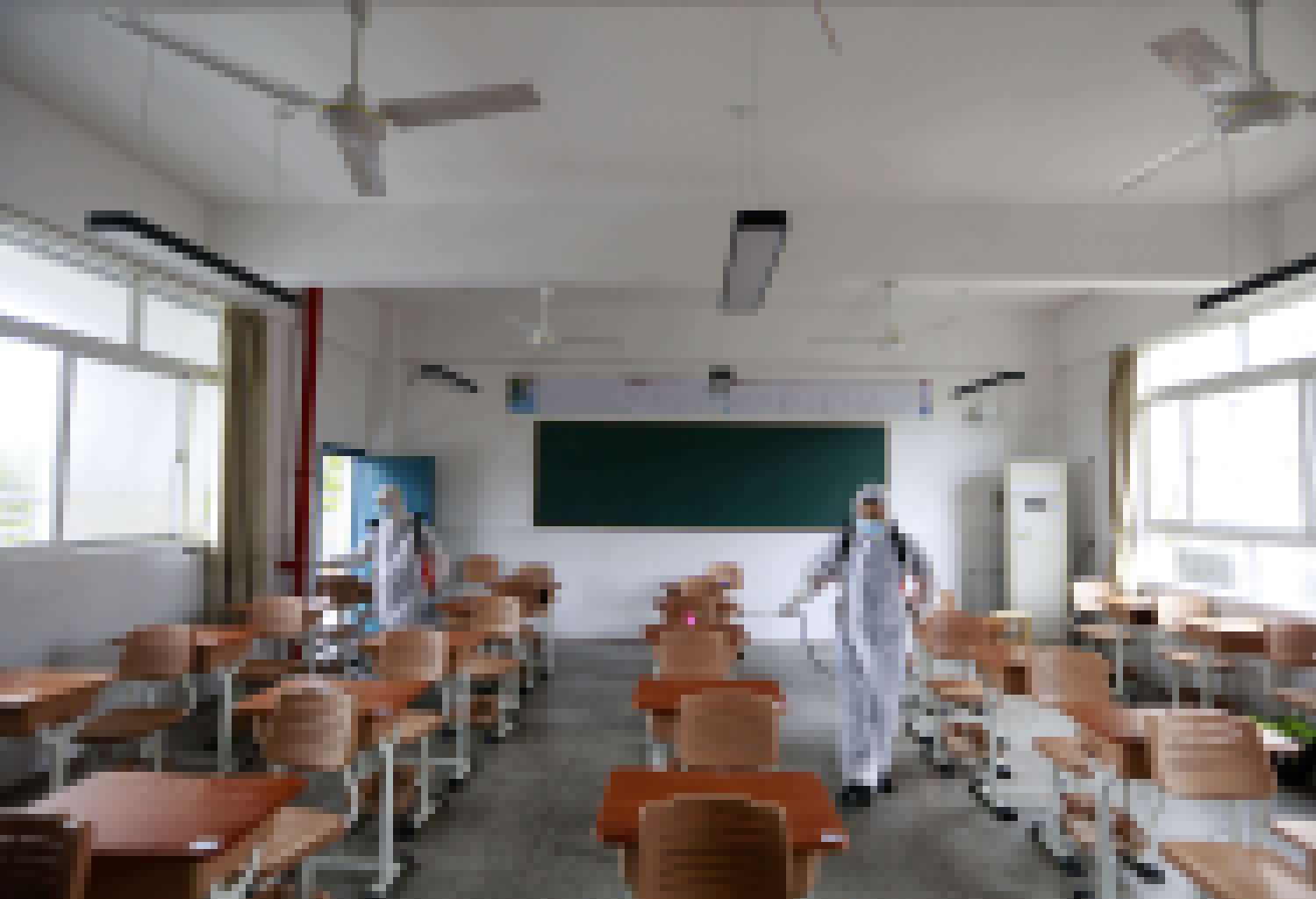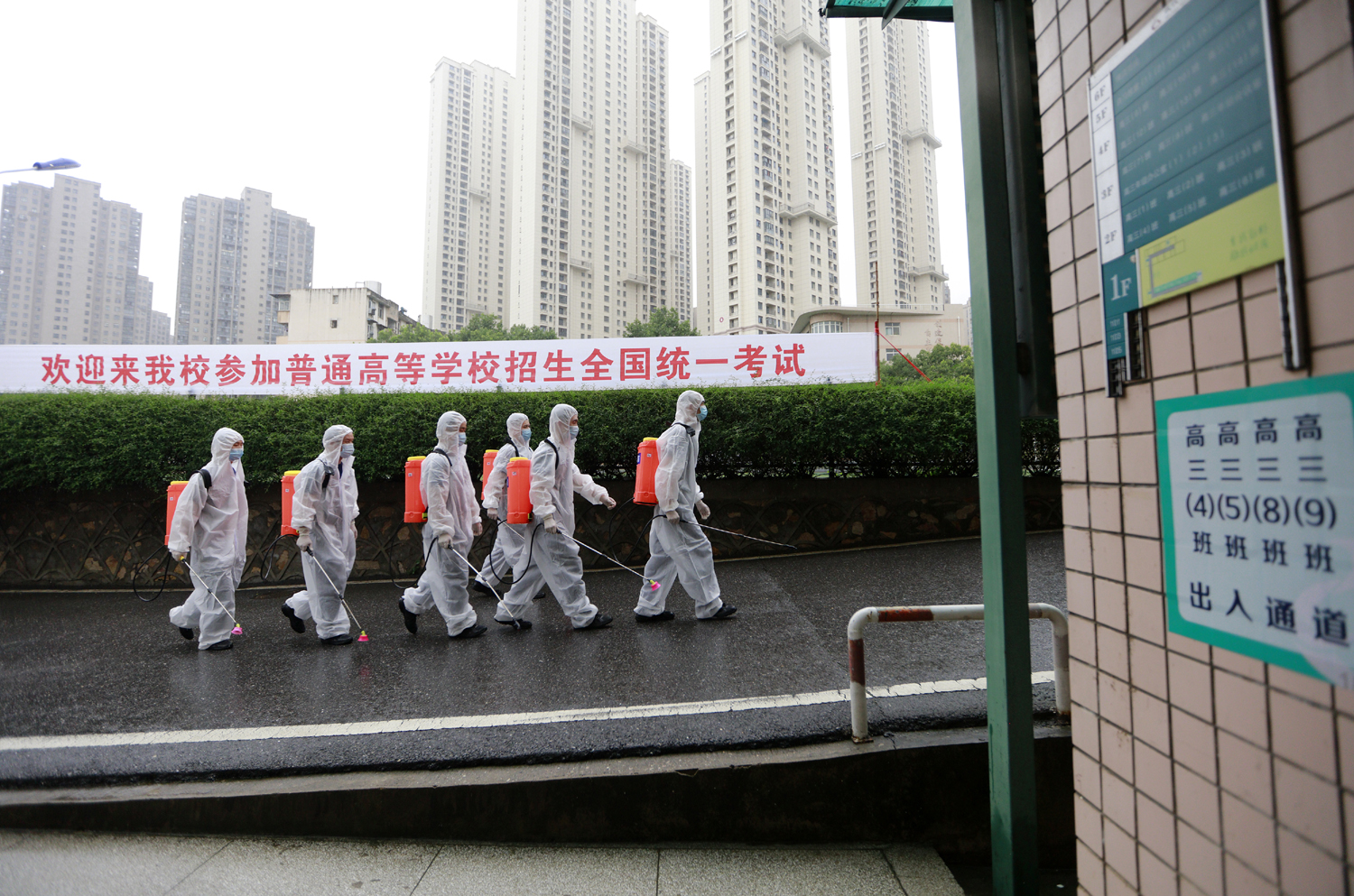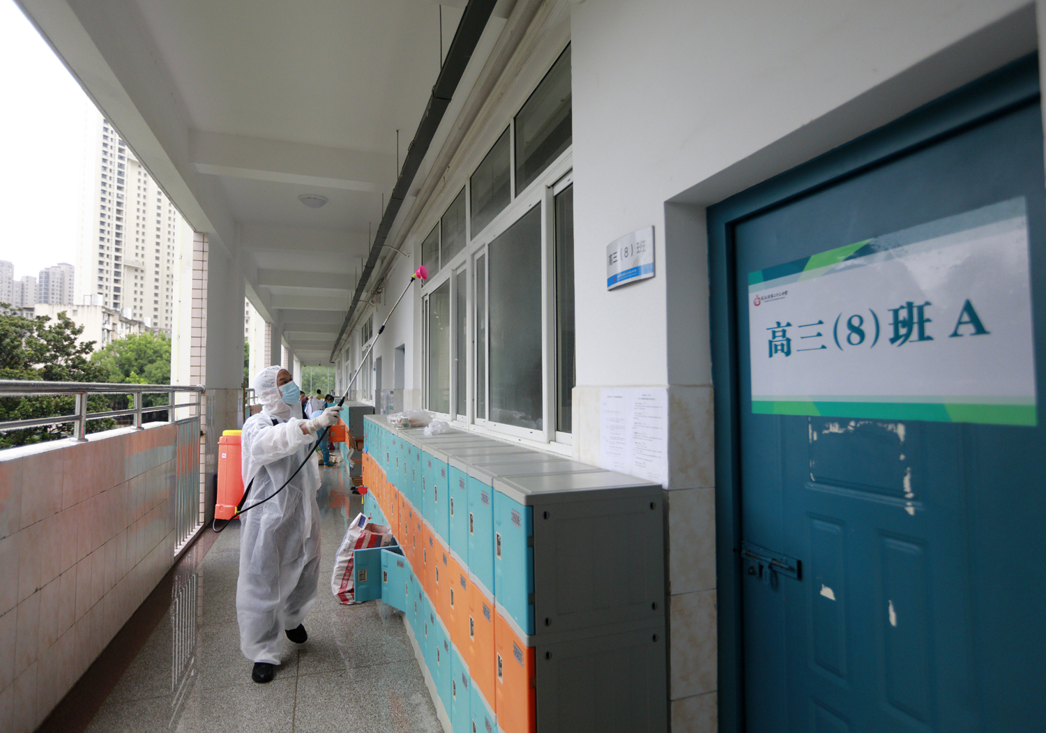 7月5日,在武漢市第二十三中學(xué),消防員正在對高考考場進(jìn)行全面消殺。央廣網(wǎng)發(fā) 通訊員王方攝