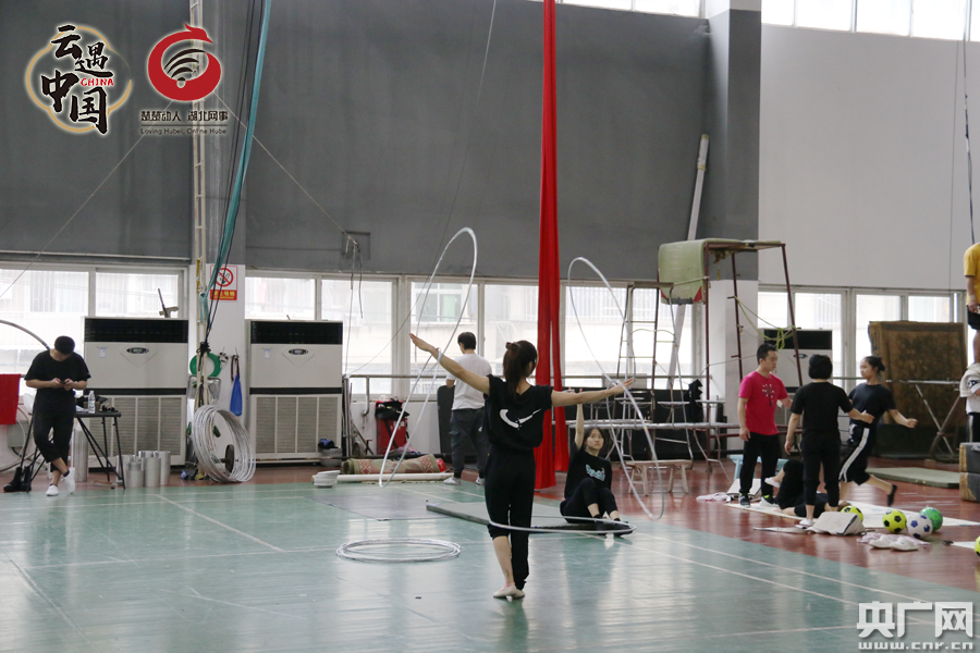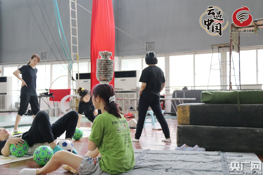 在武漢雜技團訓練室,演員們正在訓練。(央廣網實習記者 王可佳 攝)