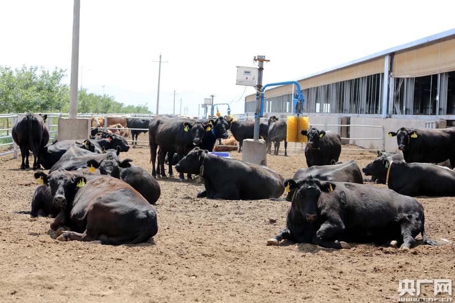走進縣城城南的伊楊現代牧業養殖基地,入口處豎立的一塊顯示著氣溫、適度、二氧化碳含量等大數據的大屏幕格外醒目。一頭頭毛色油亮、黑里透光的安格斯牛正在懶洋洋地享受著午后的陽光。