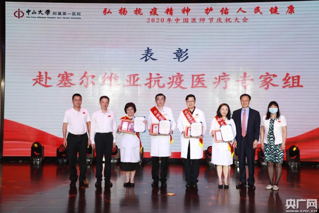 △中國赴塞爾維亞抗疫醫療專家組受表彰(央廣網發 中山一院供圖)
