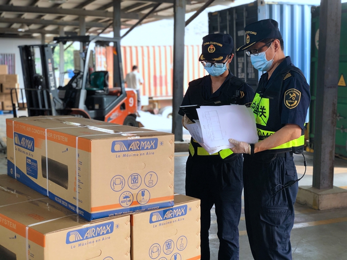 在中山保稅物流中心物流園區,1081臺中山制造的空氣加濕器在海關關員的監管下,啟運發往美國。