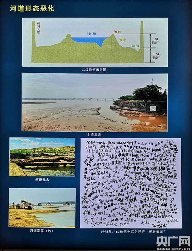 《163位院士為“拯救黃河”簽名》黃河頻繁的季節性斷流始于20世紀70年代初,特別是進入90年代之后,斷流現象更為嚴重。1997年,黃河斷流達226天,從河口一直溯延到開封,為歷時最長的斷流,舉世關注。1998年1月,針對黃河斷流日益嚴峻的嚴重形勢,中國科學院、中國工程院163位兩院院士聯合簽名發出“拯救黃河”的呼喊。(總臺央廣記者 任磊萍 攝)