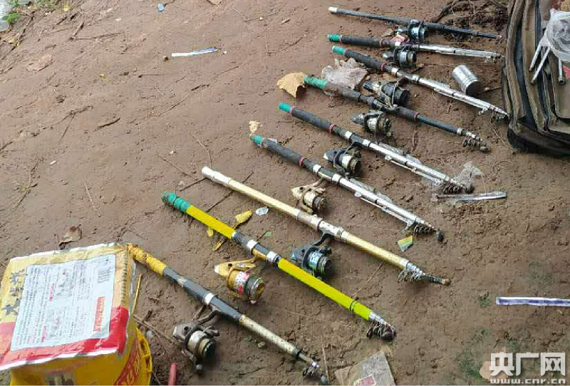 民警根據男子所在位置上前查看,當民警靠近時,發現河邊整整齊齊排了一排魚竿,后經民警的清點,河面上足足擺了九根釣魚竿。后經民警詢問,九根釣魚竿均屬于鄒某。