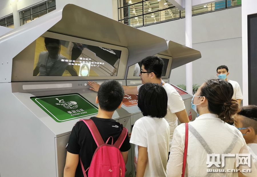 數字生態成果展區中,工作人員向觀眾演示智能垃圾分類(央廣網記者 魏文欣 攝)