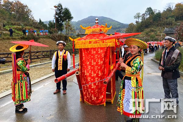 湖南隆回虎形山瑤族鄉上演了古老浪漫的花瑤婚俗(央廣網記者 堯遙 攝)