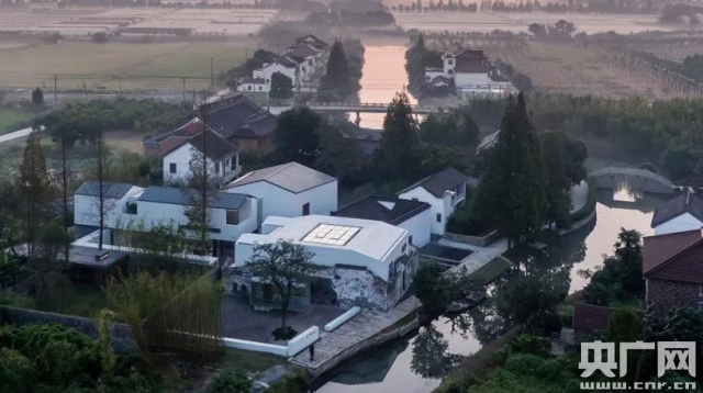 章堰村位于上海西郊的重固鎮,是上海古文化發源地,福泉山文化的代表之一。由中建東孚城投公司投資建造的章堰村文化館,在對當地民宅“章家宅”的舊址老宅清理殘破部分后,原有的老墻得以保留,于是在古瓦青磚之間一棟被老墻包裹起來的建筑誕生了。白色新建筑部分遠看就像是從里面“長”出來的。不是一味地推倒重建,或修舊如舊,而是遵循建筑本身的歷史脈絡,將當代的設計理念和功能需求置入其中,仿佛老房子里“長”出新房子。
