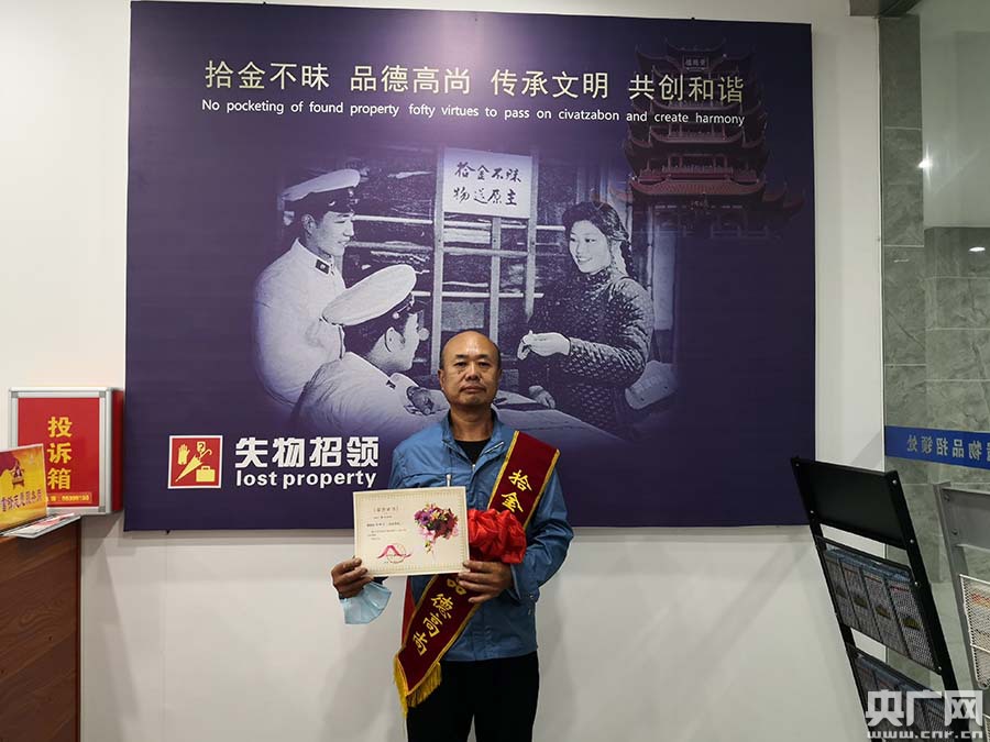 拾金不昧先進(jìn)個(gè)人(央廣網(wǎng)發(fā) 武漢公安供圖)