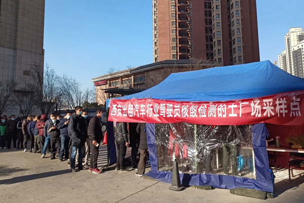 西安出租車(chē)、網(wǎng)約車(chē)駕駛員排隊(duì)接受核酸檢測(cè)(央廣網(wǎng)發(fā) 徐楊 供圖)