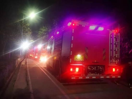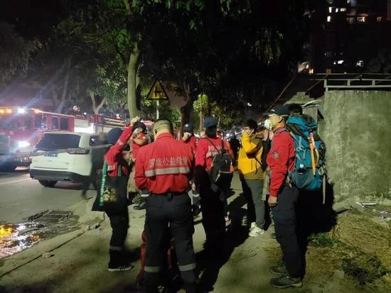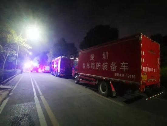 23時許深圳公益救援隊已在附近集合時刻準備支援,他們主要負責救援協助、物資保障等支援工作。凌晨12時30分許,多輛泡沫消防車進入救援現場,與此同時,新一批的深圳公益救援隊已經集結!