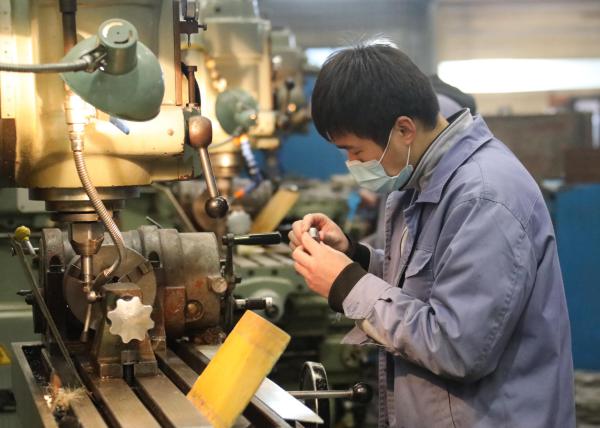 在京南·固安高新區新興園一家企業車間,工人們正在加工零部件(央廣網發 門叢碩 攝)