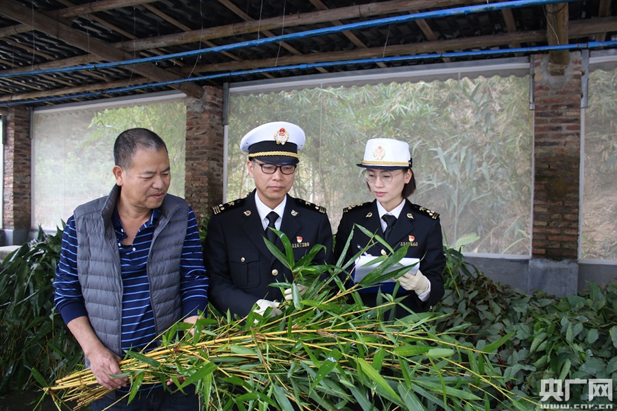 “我們日常監管主要查看竹葉有沒有病蟲害,例如竹葉表面有沒有纏有白絲的葉苞,如果有就表明葉苞里面可能包裹著竹螟幼蟲。這是一種能嚴重危害竹子的卷葉蟲,要及時做出處理。”撥開眼前密密麻麻的竹叢,廣州海關所屬從化海關屬地外勤科副科長徐蕾拿起竹子前段較嫩的竹葉,仔細翻開查看,“這些竹葉都十分健康、鮮嫩,是大熊貓最喜愛的食物!