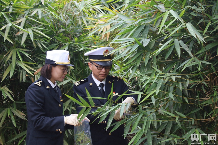 徐蕾和同事用剪刀抽取長度約50厘米連枝帶葉的竹枝,放入取樣袋,“我們需要抽取約1公斤樣品,送廣州海關技術中心進行農殘項目檢測!