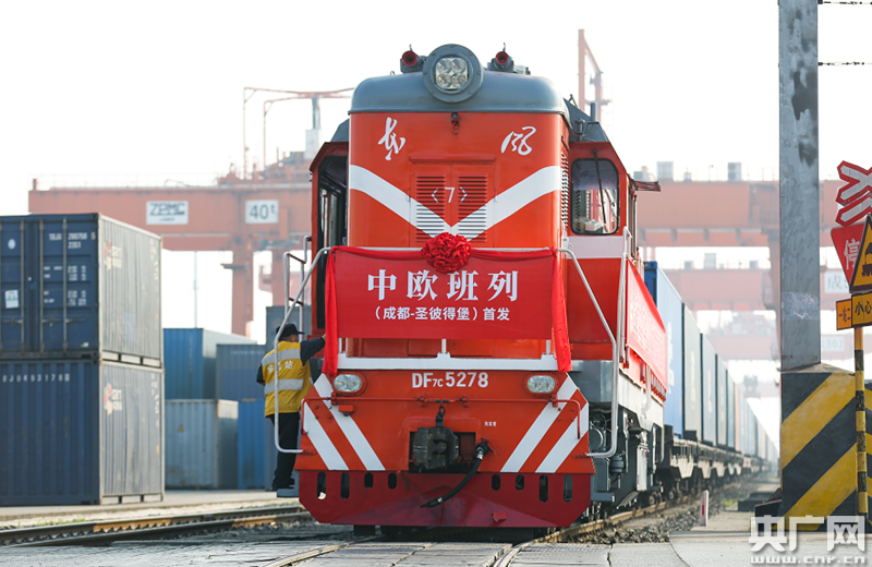 成都至俄羅斯圣彼得堡中歐班列首發(央廣網發 成都青白江區委宣傳部供圖)
