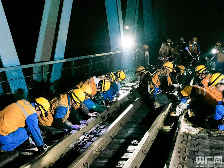 在近百米高的曲江大橋上,夜間氣溫已接近0℃,寒風刮得橋梁有些搖晃,這群鋼鐵漢子個個喘著白氣,頭上結了一層薄薄的冰霜,然而這一切絲毫沒有影響到他們的斗志!按蠹以偌影褎,檢查一下各自負責的工作,天窗時間還有20分鐘。”白永潔用響亮的呼喊聲提醒每一名作業人員。23時40分,此次施工最后3顆橋枕更換完畢,封鎖線路正點開通。通過8個夜天窗的連續奮戰,曲江大橋更換失效橋枕施工共計更換橋枕23顆、K型墊板7塊,橋枕膩縫500顆,護木整修160米。