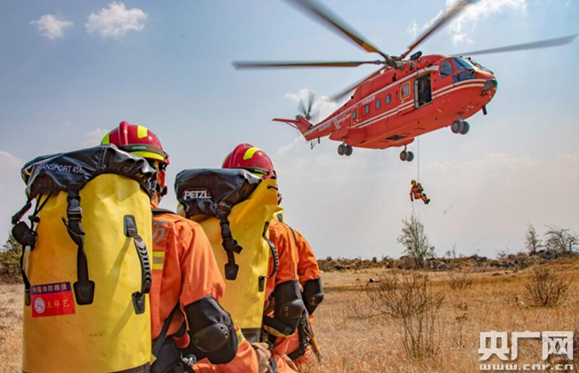 云南消防和昆明航空救援力量聯合開展航空投送實戰演練(央廣網發 通訊員供圖)