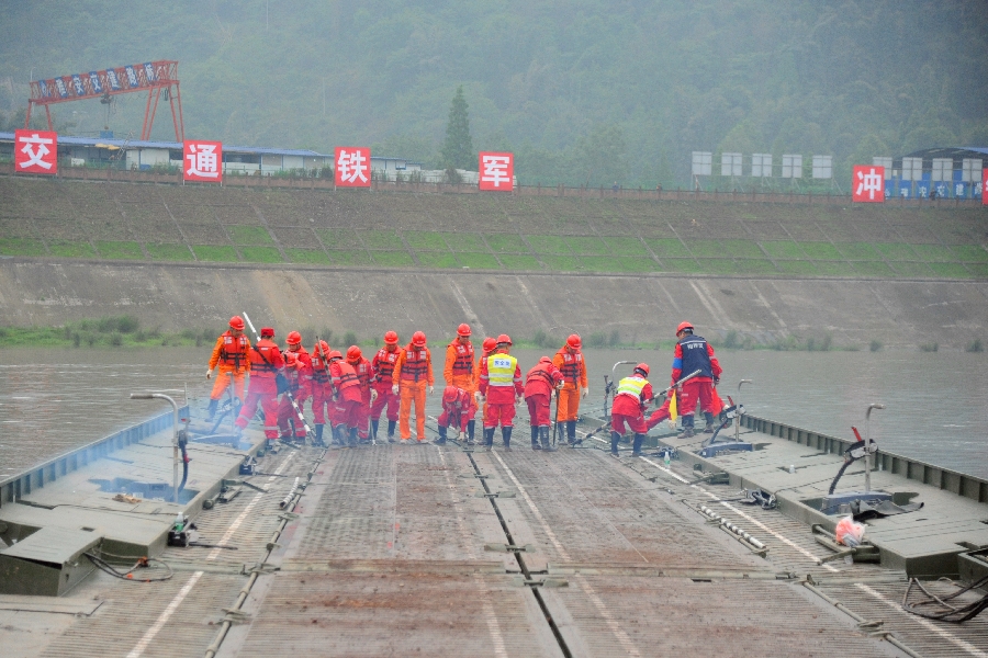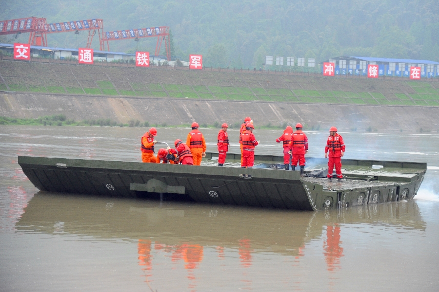 此次演練設(shè)置了應(yīng)急響應(yīng)、災(zāi)情偵測研判、交通管制和繞行方案制定發(fā)布、搶險力量調(diào)動、公路搶通保通、動力舟橋架設(shè)、51米應(yīng)急機(jī)械化橋+75米模塊化橋架設(shè)、飲用水凈化與野戰(zhàn)炊事保障等八個科目,采取平戰(zhàn)結(jié)合、點(diǎn)面結(jié)合、虛實結(jié)合等表現(xiàn)形式,充分展示了交通應(yīng)對地震災(zāi)害處置全過程,涵蓋了橋梁垮塌、山體滑坡等可能引發(fā)的公路阻斷的多種形式,具有普遍適用性,貼近實戰(zhàn),客觀反映了交通搶通保通保運(yùn)保安全的工作環(huán)境,在通道中斷、應(yīng)急力量難以展開的狀況下,突出強(qiáng)調(diào)了方法和效率,實戰(zhàn)性強(qiáng)。