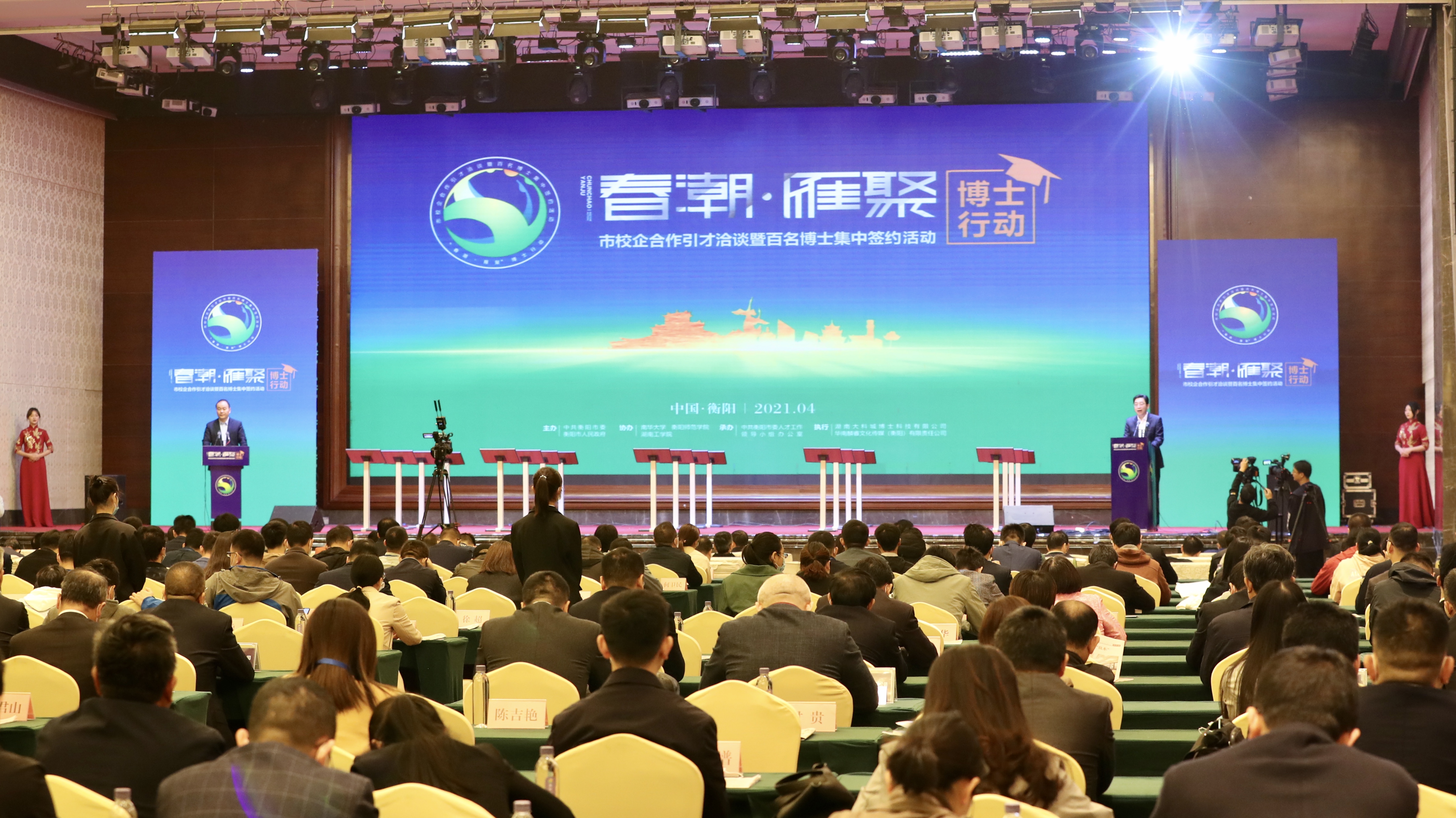 央廣網長沙4月29日消息(記者鄧文輝 通訊員李英姿)4月28日-29日,湖南省衡陽市舉行“春潮·雁聚”博士行動——市校企合作引才洽談暨百名博士集中簽約活動,衡陽市委人才辦與3所駐衡高校、59家企業簽訂了合作引才戰略協議,近200名博士生來衡對接洽談。其中,130余名博士生與3所駐衡高校、9個市屬事業單位、59家企業簽訂了引進意向協議。