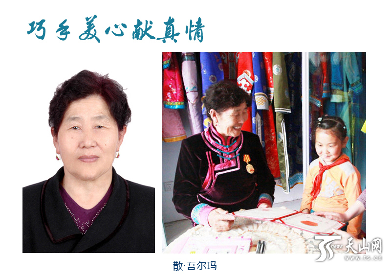 她的蒙古族服飾及傳統(tǒng)手工藝品制作,匠心獨(dú)具,產(chǎn)品暢銷國內(nèi)外。她富裕不忘群眾,免費(fèi)給收30多名村民傳授技藝,帶領(lǐng)大家脫貧致富。她熱心幫助他人,每年都免費(fèi)為村里的孤寡老人和可憐的孩子制作衣物,為困難家庭送去生活必需品和生活費(fèi),為災(zāi)區(qū)帶頭捐款捐物,獻(xiàn)上一片愛心……只要?jiǎng)e人有困難,她都會(huì)不遺余力地去幫助。她是基層群眾心目中最親近、最信任的人。
