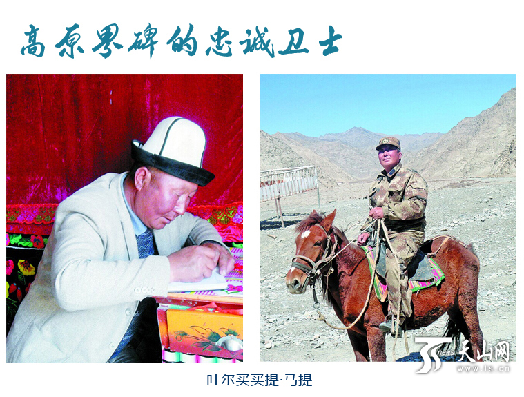 他忠誠守護(hù)祖國的西部邊防線36年,行程13萬多公里。36年來,他穿壞了400多雙鞋,平均10天不到就穿壞一雙。36年來,有5匹馬伴他老去。36年來,28個(gè)古爾邦節(jié)、春節(jié)他沒跟家人團(tuán)聚。巡邏路上,灑下的是吐爾買買提 馬提的汗水,鋪滿的是吐爾買買提 馬提的愛國情。