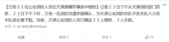 關鍵詞:天津公安;遺體;消防員;爆炸;中隊