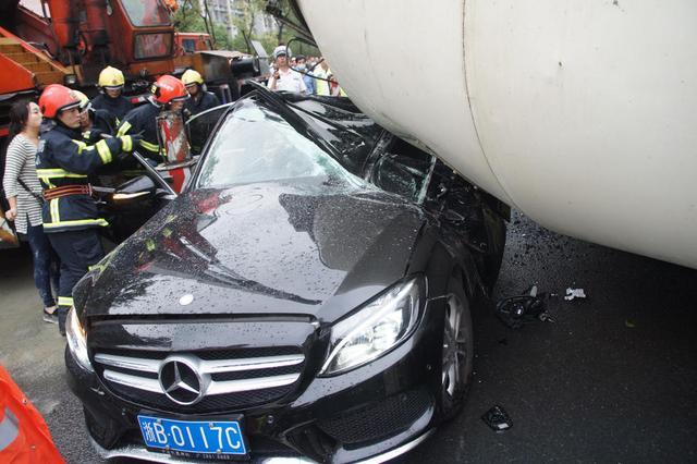 水泥車側(cè)翻壓住奔馳,小車駕駛員死亡