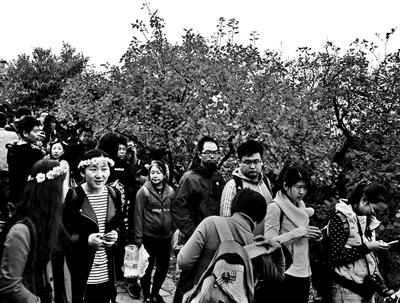 上周末香山公園迎來客流高峰。每天六七萬游客的到來雖然還不至于讓景區(qū)飽和,但香山周邊的交通狀況不容樂觀。昨天下午,北京青年報記者避開高峰時間前往香山公園,但依舊“一路囧途”,行至最后一公里時交通幾近癱瘓。其中不少游客返程時仍然擠不上車,而“黑車”價格則高至100元一車。